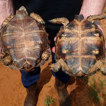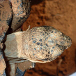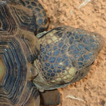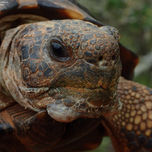 This is the smallest North American tortoise and the only tortoise native to Texas. Adults reach a shell length up to 8.75 inches (22 cm). The carapace is is rounded in dorsal perspective it is almost as wide as it is long and ranges in coloration from dark brown with beige highlights appearing on the center of the costal and vertebral scutes and on the edges of the marginal scutes. The plastron is colored similarly to the carapace with dark brown to black present on the edge of the plastral scutes distal to the mid-line. The head, neck and limbs are can range in coloration from tan to dark brown with some specimens exhibiting black scales on the front of the limbs and bottom of the feet. A pair of protruding chin glands are found on the lower jaws of adult males. The chin glands will exude a fatty substance that the tortoises can smell. The full function of these glands have not yet been documented.