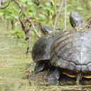 BEHAVIOR AND ECOLOGY: This aquatic turtle is fond of basking and within its range can be found in bodies of freshwater with soft bottoms and aquatic vegetation including: lakes, oxbows, swamps, marshes and ephemeral bodies of water such as flooded forest. Juvenile chicken turtles are carnivorous but shift towards an omnivorous diet as they reach maturity.